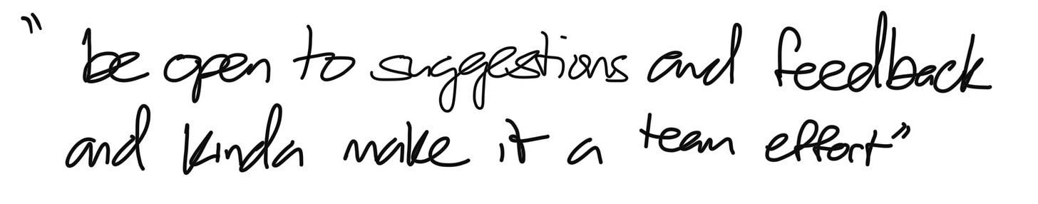 Understanding others’ challenges: I thought Kayla’s perspective on all the things she had running through her head was really eye-opening. Just like I’m constantly calibrating all my camera settings, how the light’s coming in, framing, etc - she’s thinking about a long list of details about how she’s showing up on camera. It's a good reminder for me, for us - the more we can put ourselves in the other people on the team’s shoes, the better we’ll be at our own jobs.